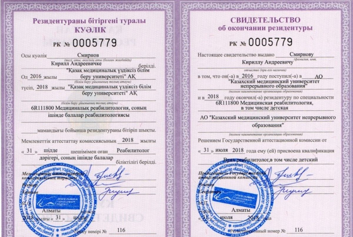 2018г. Казахский медицинский университет непрерывного обучения резидентура по специальности “Медицинская реабилитология”