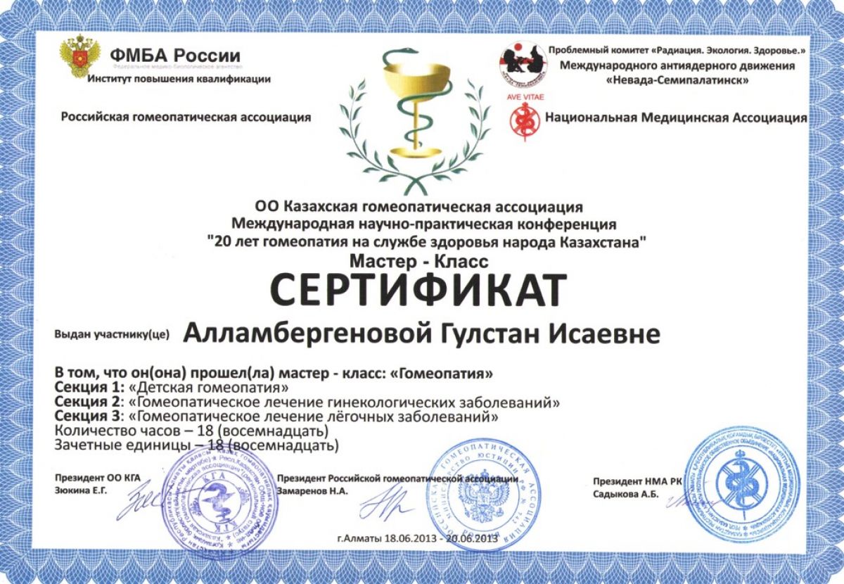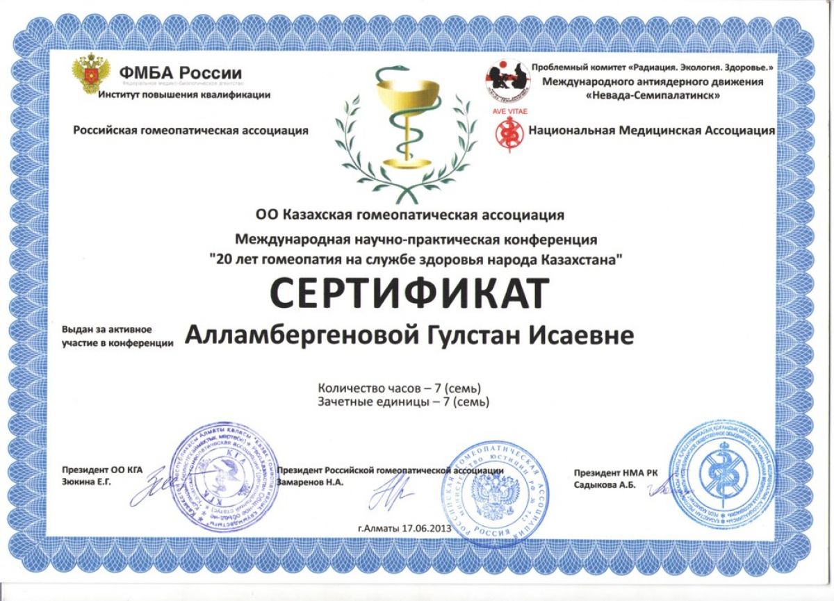 • 2007 г. – курс усовершенствование врачей на тему «Гомеопатия как искусство».