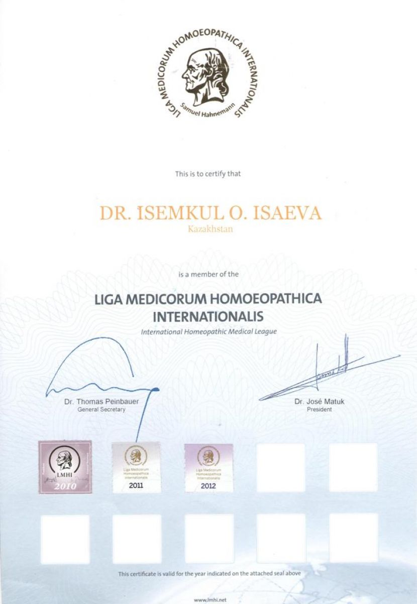 • член Международной лиги гомеопатов;