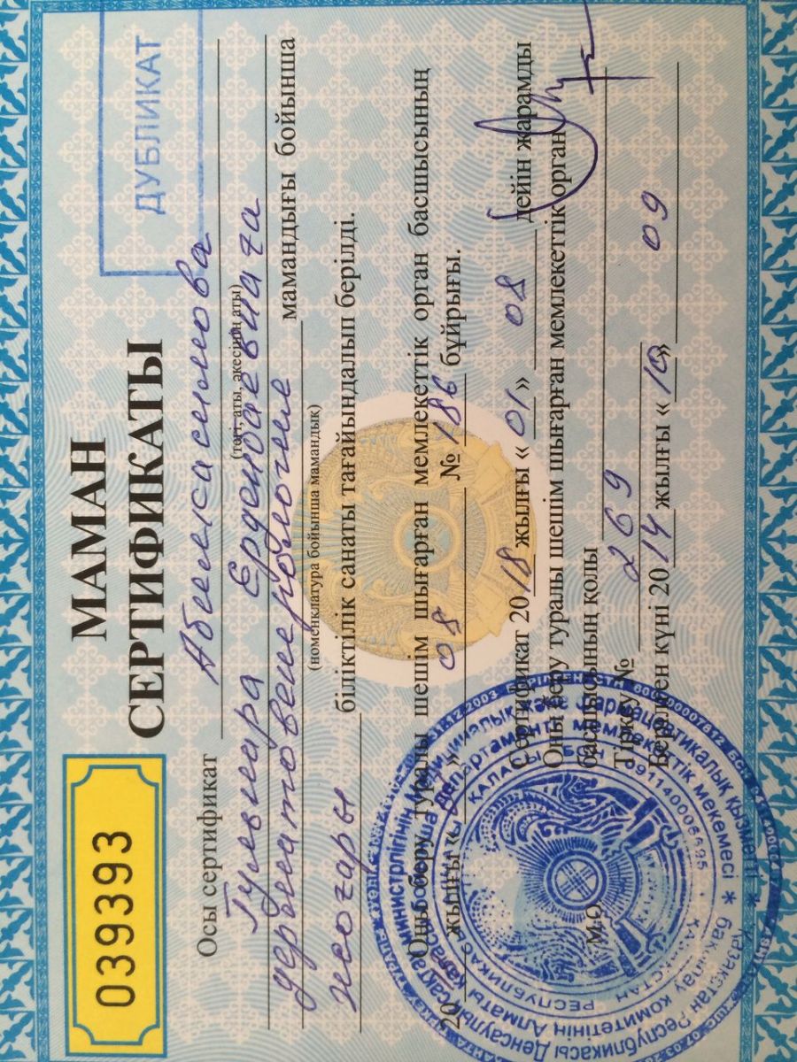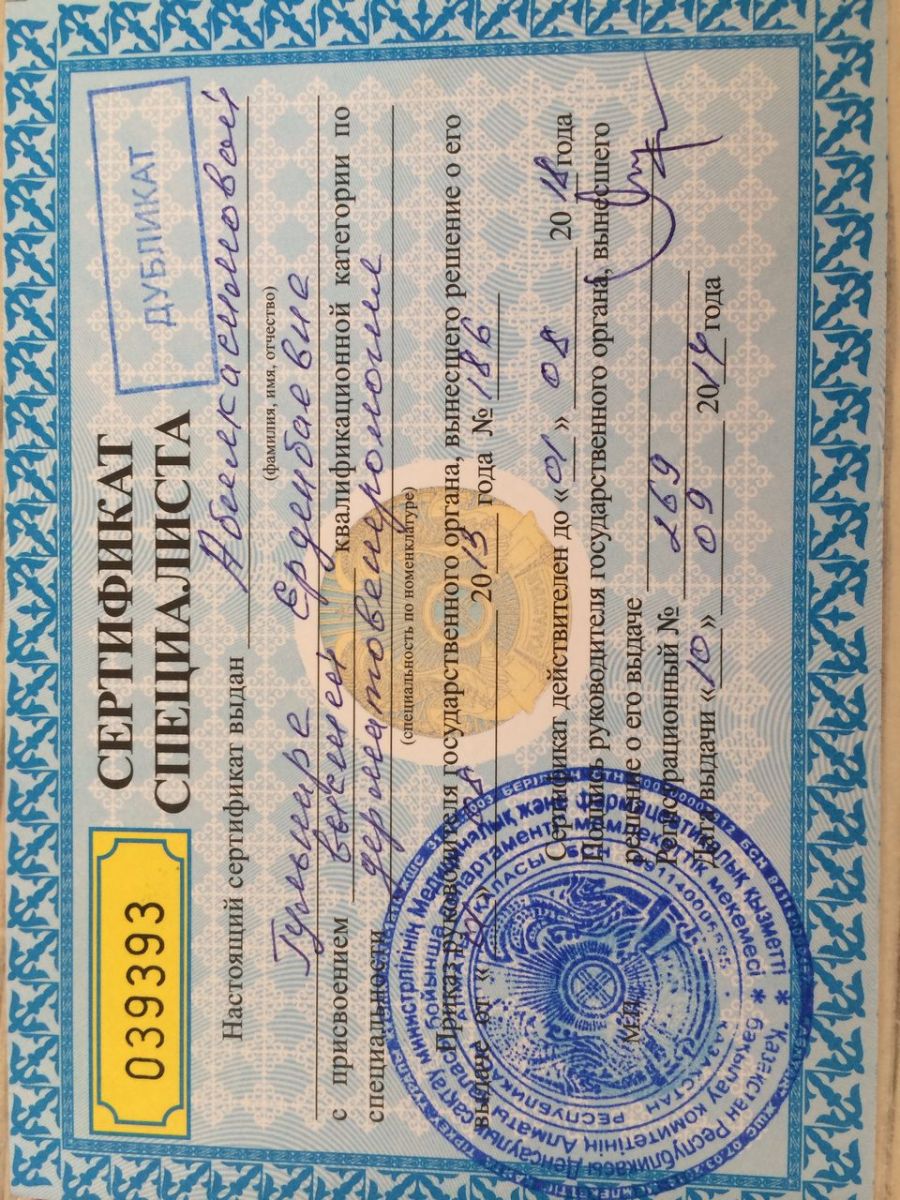 - 1997 г. – Карагандинская государственная медицинская академия.