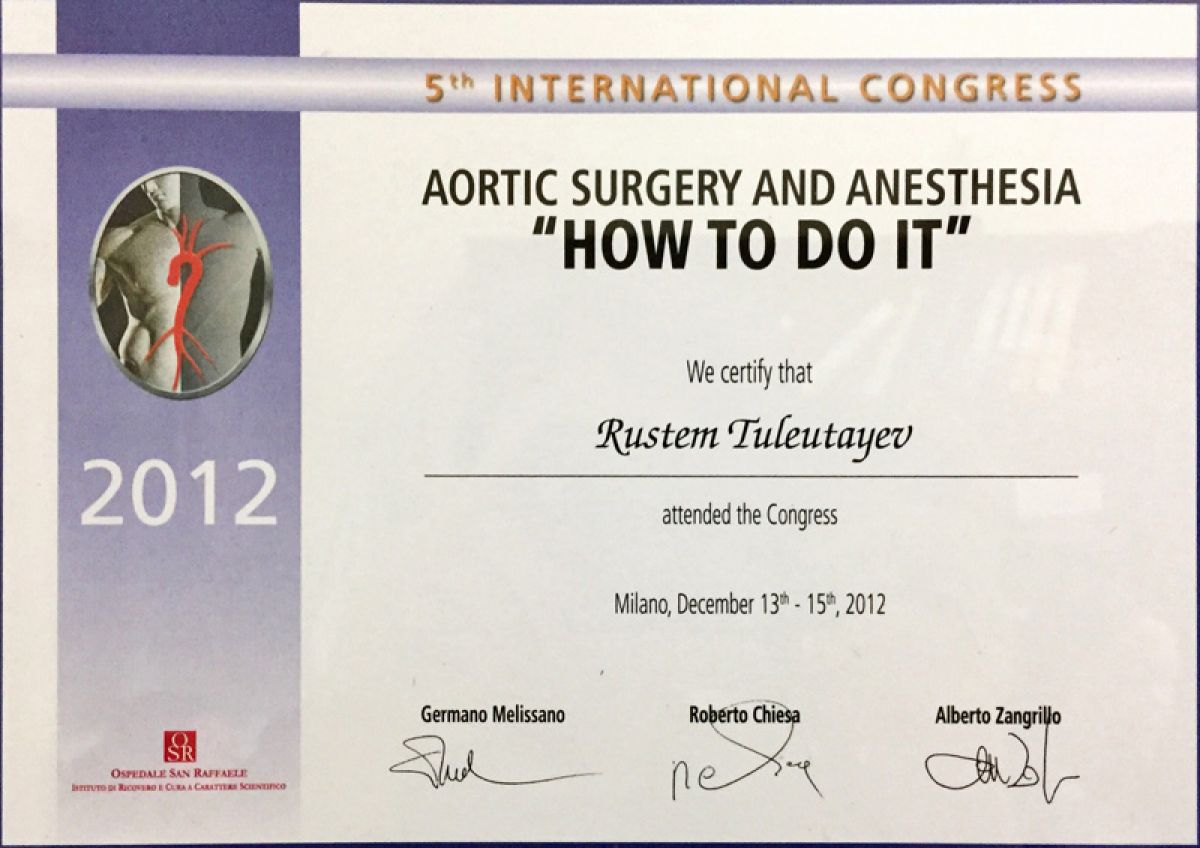 - 2012 г. – курс усовершенствования по хирургии восходящего отдела и дуги аорты «How to do it» (Милан, Италия);