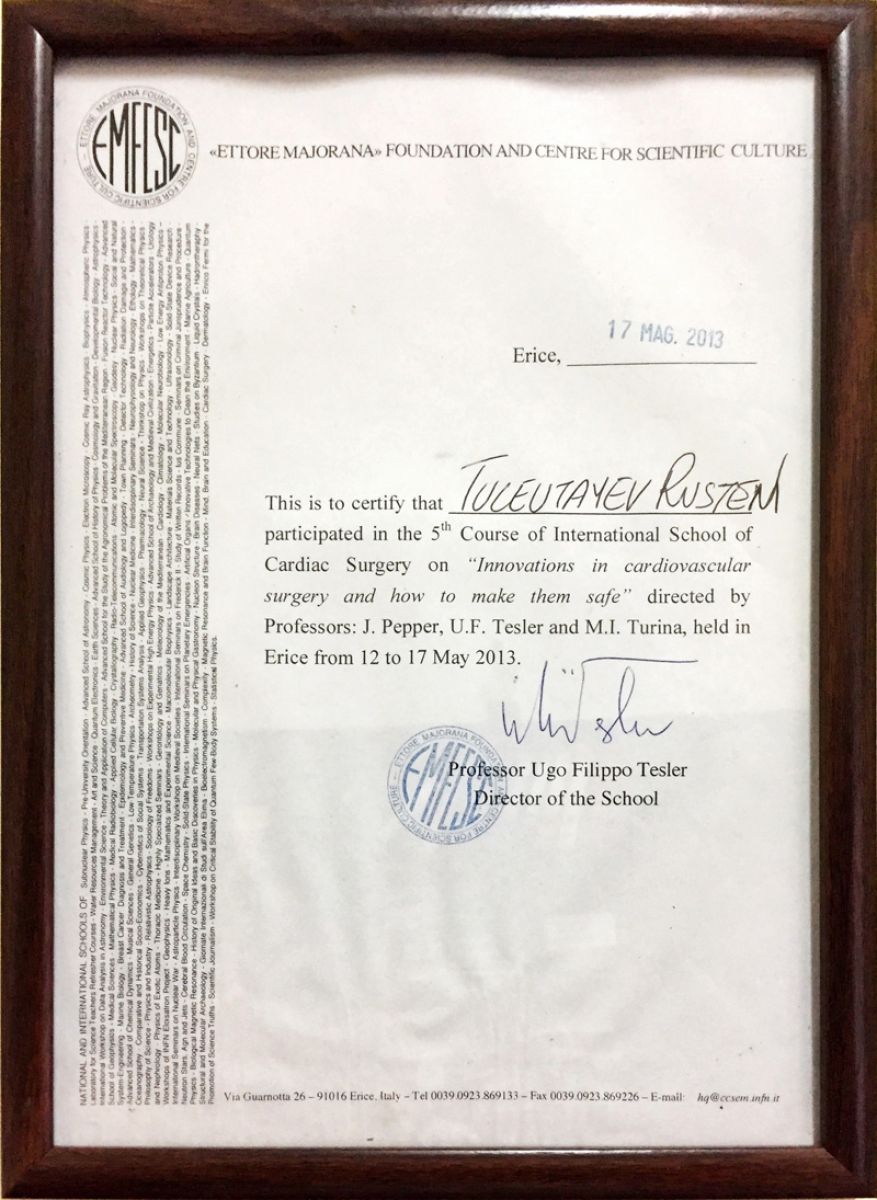 - 2013 г. – тренинг-курс по реконструктивной хирургии митрального клапана (Вена, Австрия);