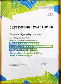 - 2013 г. – тренинг-курс по минимально инвазивной и робот-ассистированной кардиохирургии, (Новосибирск, РФ);