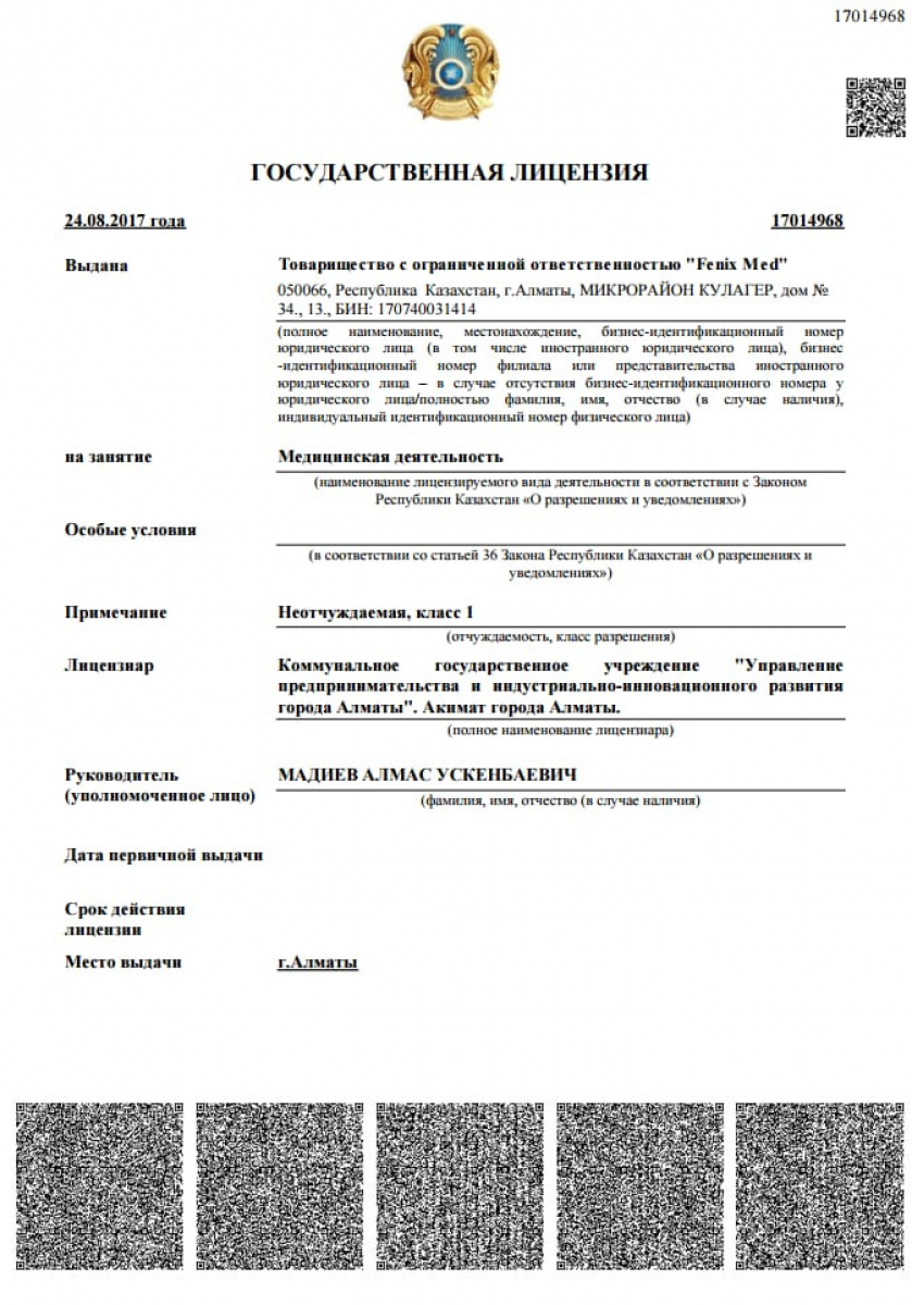 «Fenix Med» медициналық орталығы – бұл ең жаңа диагностикалық және емдеу технологияларын қолданатын және Алматының үздік мамандары қабылдайтын көпсалалы клиника.