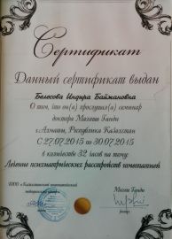 1998 ж. – ҚазМММУ, «Невропатологияның өзекті мәселелері» тақырыбында жетілдіру;