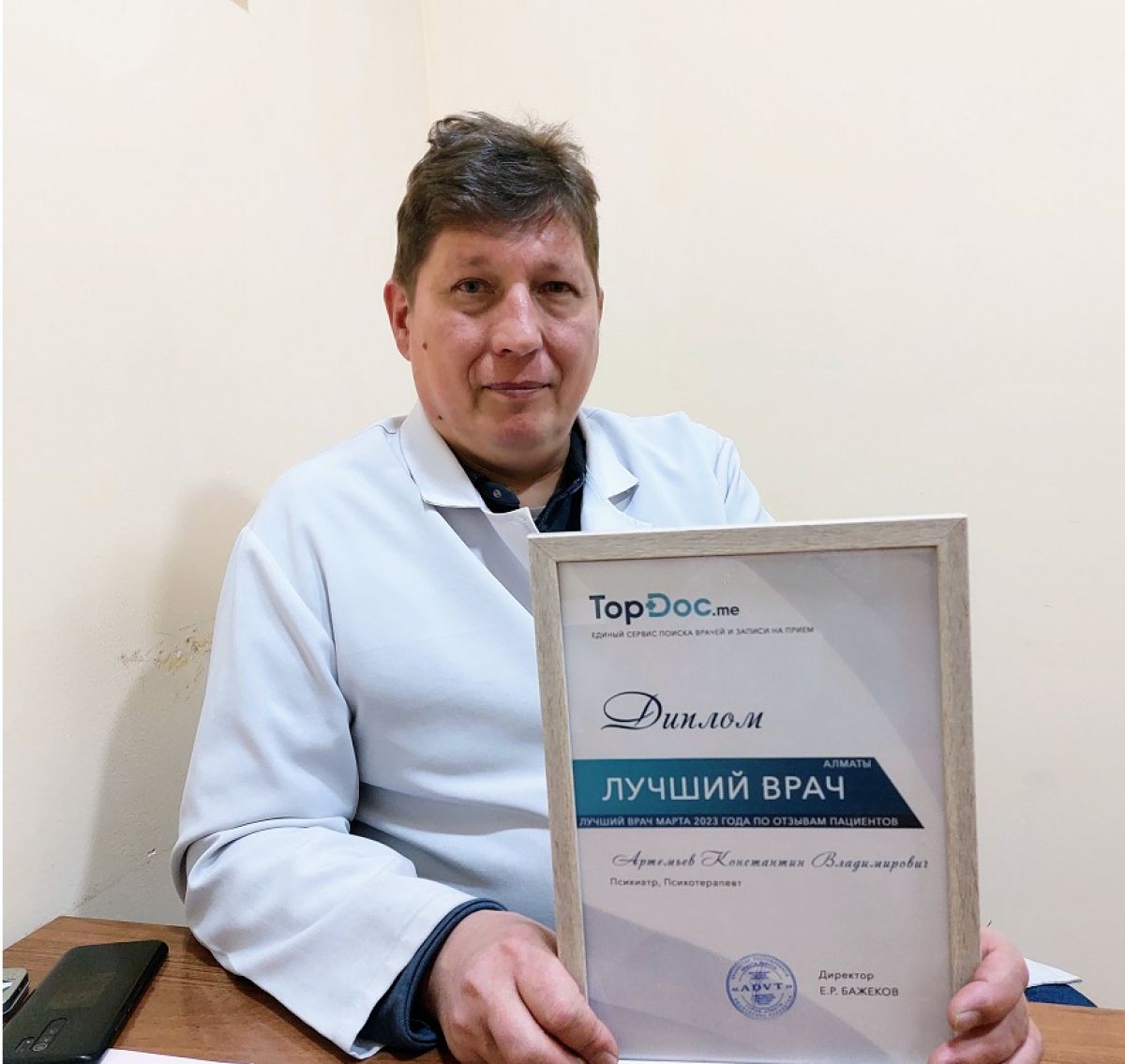 2023 жылдың наурыз айында Константин Владимирович пациенттердің пікірлері бойынша айдың үздік дәрігері болды. Доктор Артемьев бізге бейімделу бұзылысы деген ауру туралы сұхбат берді. Мақаланы мына сілтемеден оқи аласыз: