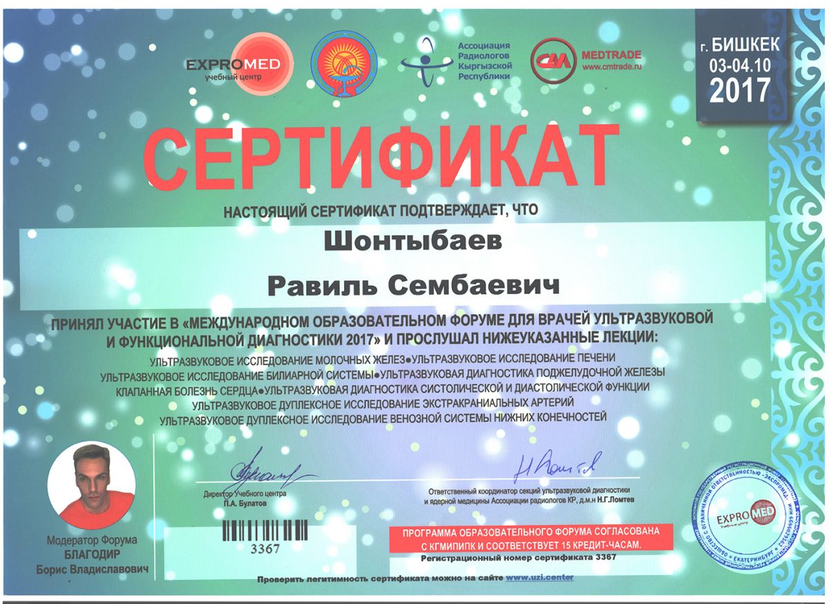 - 2017 ж. – Ультрадыбыстық және функционалдық диагностика бойынша дәрігерлерге арналған халықаралық форум.