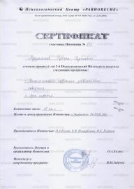 - Итальяндық гештальт-терапия институты, «Гештальт-терапевт» мамандығы.