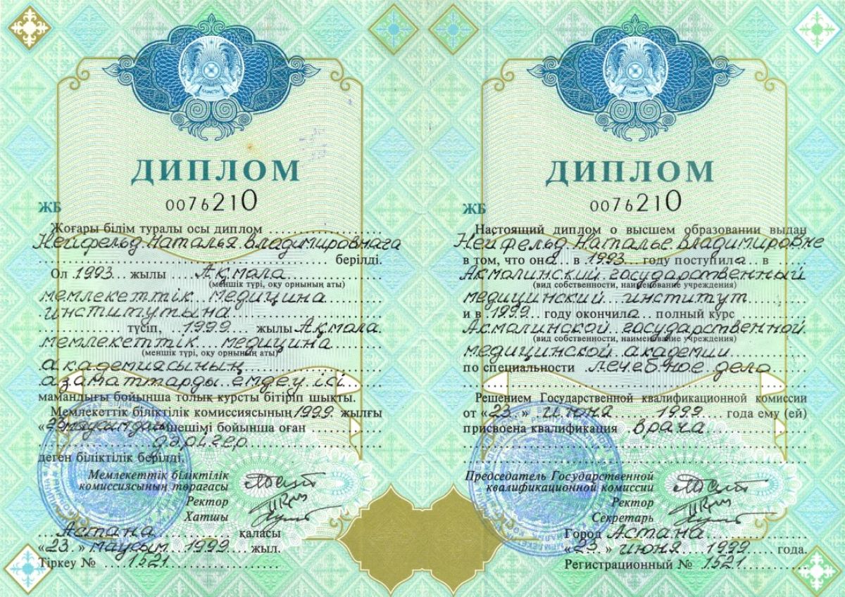 - 2018 жыл - "Медикер" медициналық орталығы, "Терапия" бөлімі.